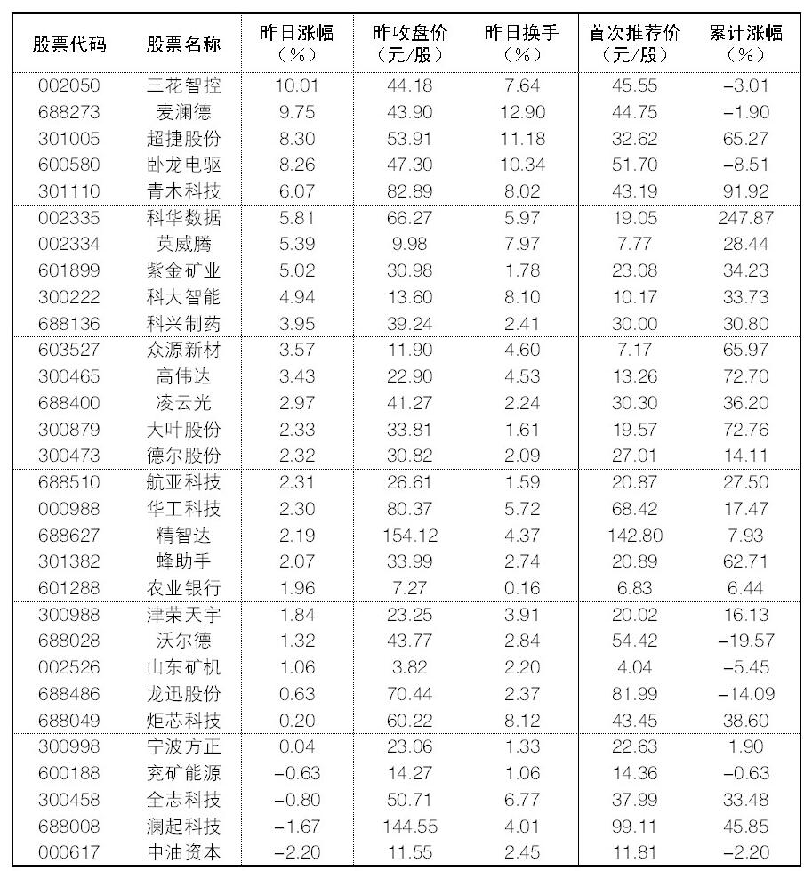 天下30指数成份股中,15日涨幅前五位的永诀是三花智控、麦澜德、超捷股份、卧龙电驱、青木科技,涨幅永诀为10.01%、9.75%、8.30%、8.26%、6.07%;跌幅榜上,中油成本、澜起科技、全志科技等跌幅居前。